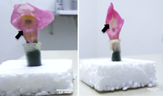 | Fleur dont les pétales ont été arrangés par les scientifique pour apparaître plus complexe (à gauche) ou plus simple (à droite)[4] |